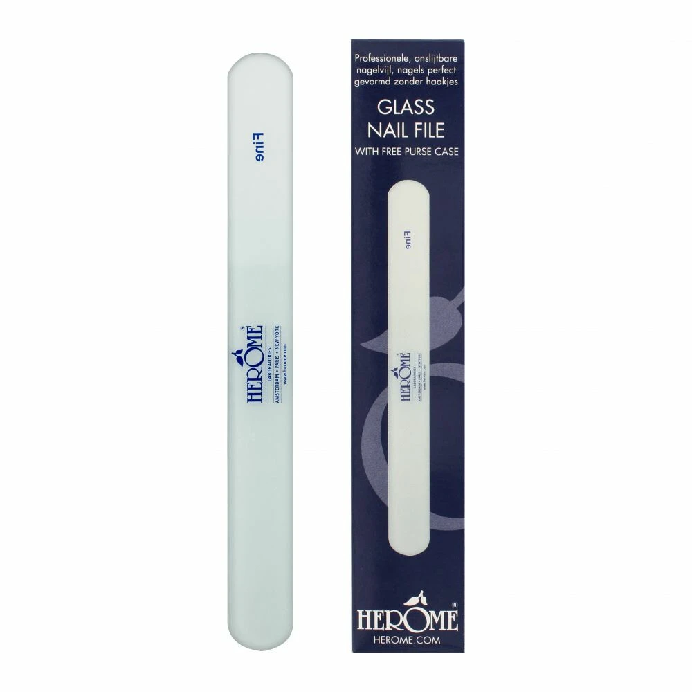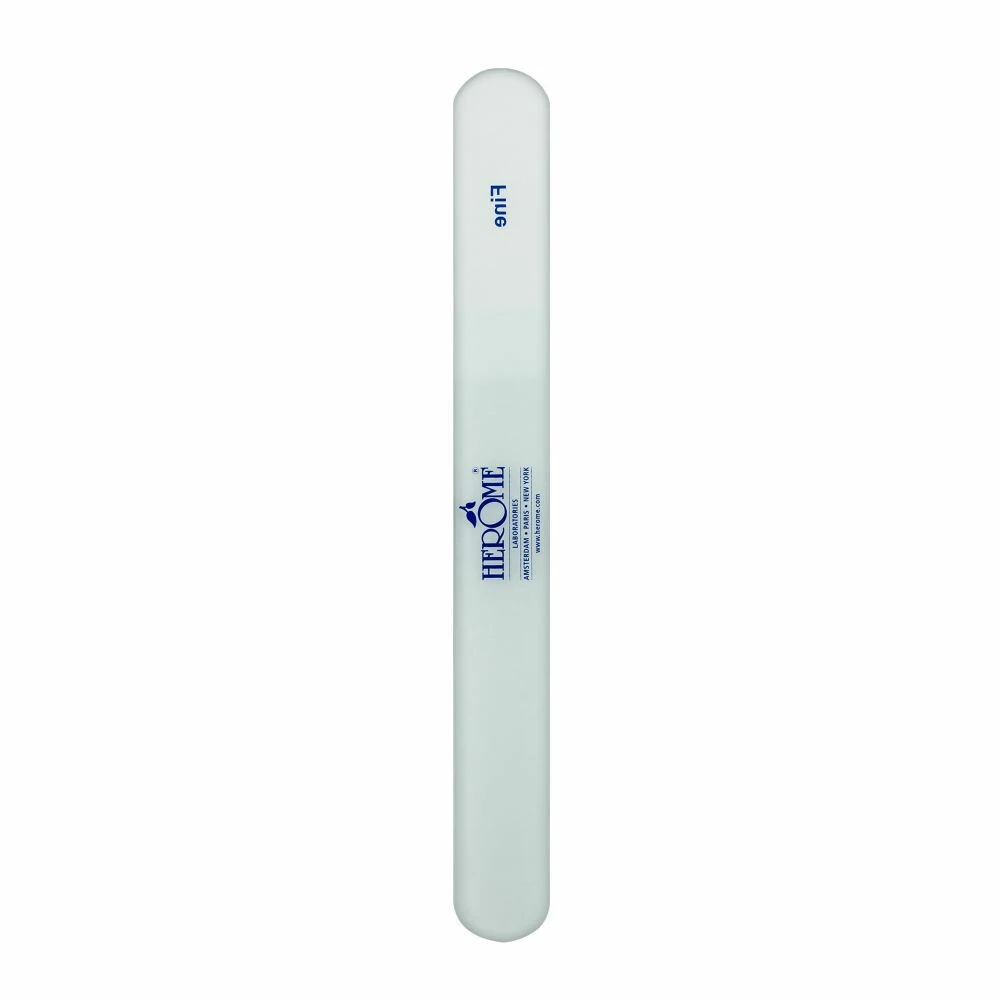 De Glass Nail File is een professionele, onslijtbare nagelvijl, die de nagels op een zachte wijze in vorm vijlt. De Glass Nail File heeft één grofheid, waarmee de nagels korter en in model gevijld worden, en de nagelplaat gesloten wordt. Is geschikt voor ieder nageltype. Het glas van de vijl is op een bijzondere manier bewerkt, zodat de nagels een natuurlijke, gladde vorm krijgen. Door de structuur van de vijl kunnen de nagels alleen vanaf de zijkant richting het midden van de nagel bewerkt