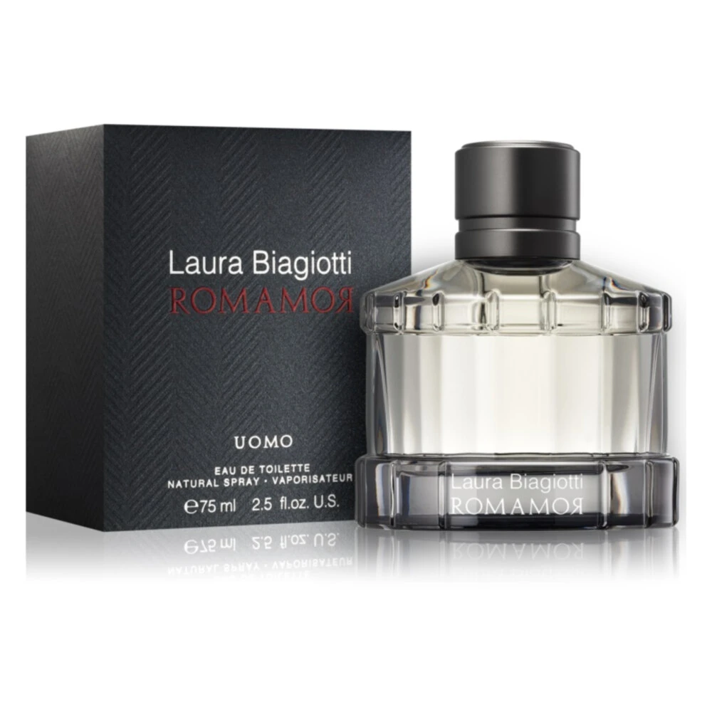 Laura Biagiotti Romamor Uomo Eau de ToiletteDe Laura Biagiotti Romamor Uomo Eau de Toilette Spray is een heldere boog naar de stad Rome. Na het sensationele succes van Roma brengt het huis van Laura Biagiotti opnieuw een eerbetoon aan de Italiaanse hoofdstad. De geur is oosters-aromatisch en heeft zeer mannelijke eigenschappen. Het verspreidt een zeer aantrekkelijke, gepassioneerde mannelijkheid, die echter nooit ostentatief lijkt. Het lijkt erop dat het niet zozeer de stad zelf op het spel staa